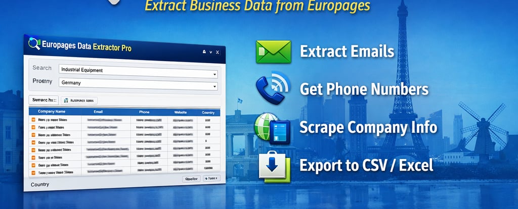 The Europages Data Extractor Pro v8.6.2 is an advanced software application specifically designed to facilitate data scraping from the Europages platform. This tool is essential for businesses and marketers who rely on accurate and comprehensive data to drive their strategies. By automating the process of data extraction, it significantly reduces the time and effort required for users who need to gather valuable information from this extensive European business directory.